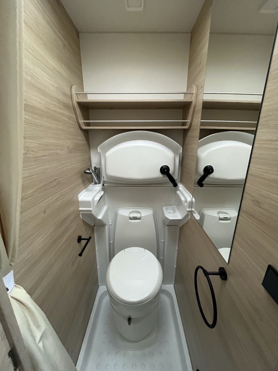 - koupelan s kazetovým WC THETFORD, umyvadlem, sprchou a teplou vodou