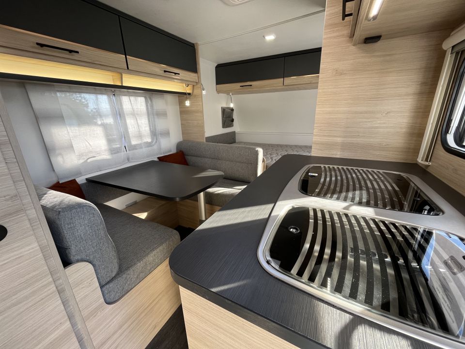 Lehký plně vybavený karavan pro 5-6 osob. V přední části francouzská postel a toaleta, uprostřed rozložitelné sezení a plnohodnotná palanda v zadní části. Ideální pro rodiny až se čtyřmi dětmi. Příznivá celková hmotnost 1300kg.