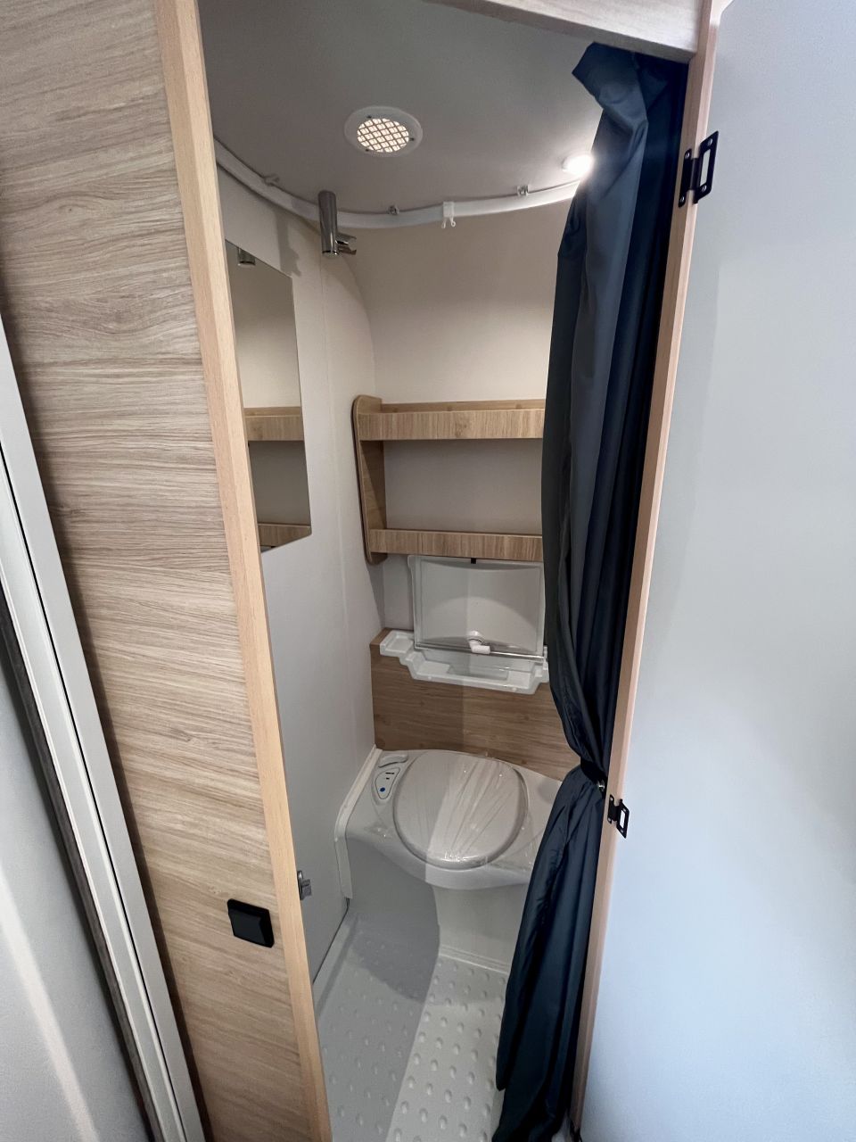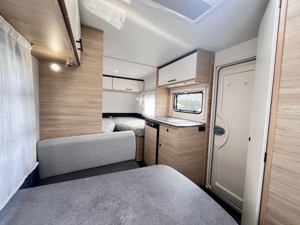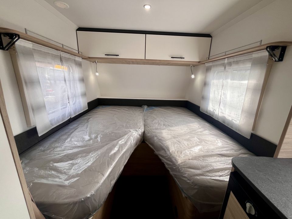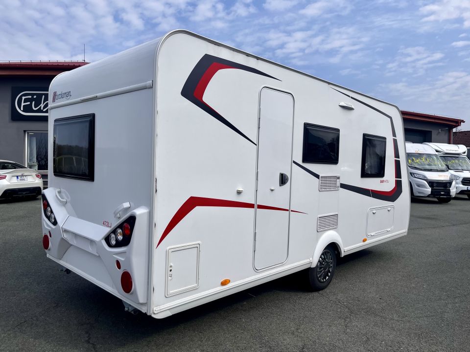 Lehký karavan ideální pro 2-4 osoby s podélným spaním a rozložitelným sezením, koupelnou vybavenou WC, umyvadlem a sprchou v zadní části a v přední části s podélným spaním. Součástí výbavy je také topení a ohřev teplé vody. Karavan je možné připojit za téměř každé tažné vozidlo.